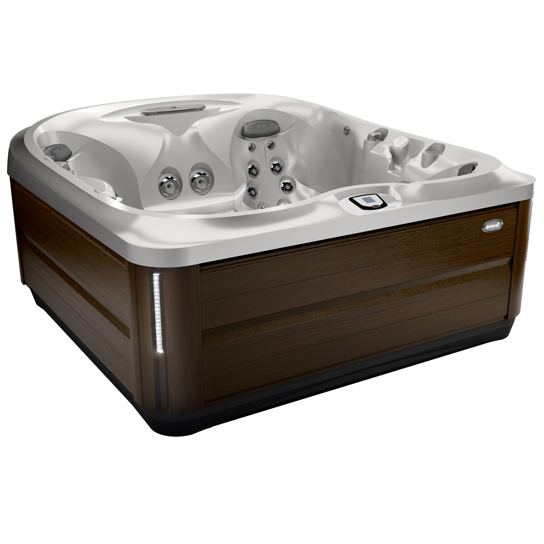 Ideal for full-body relief, the J-475™ Hot Tub seats 5-6 people. This hot tub offers the ultimate style with a relaxing, extra-wide illuminated waterfall. Plus, paired with an at-a-glance indicator light, a digital touch screen control panel, and stunning Pro-Finish™ cabinetry accented by corner lighting.