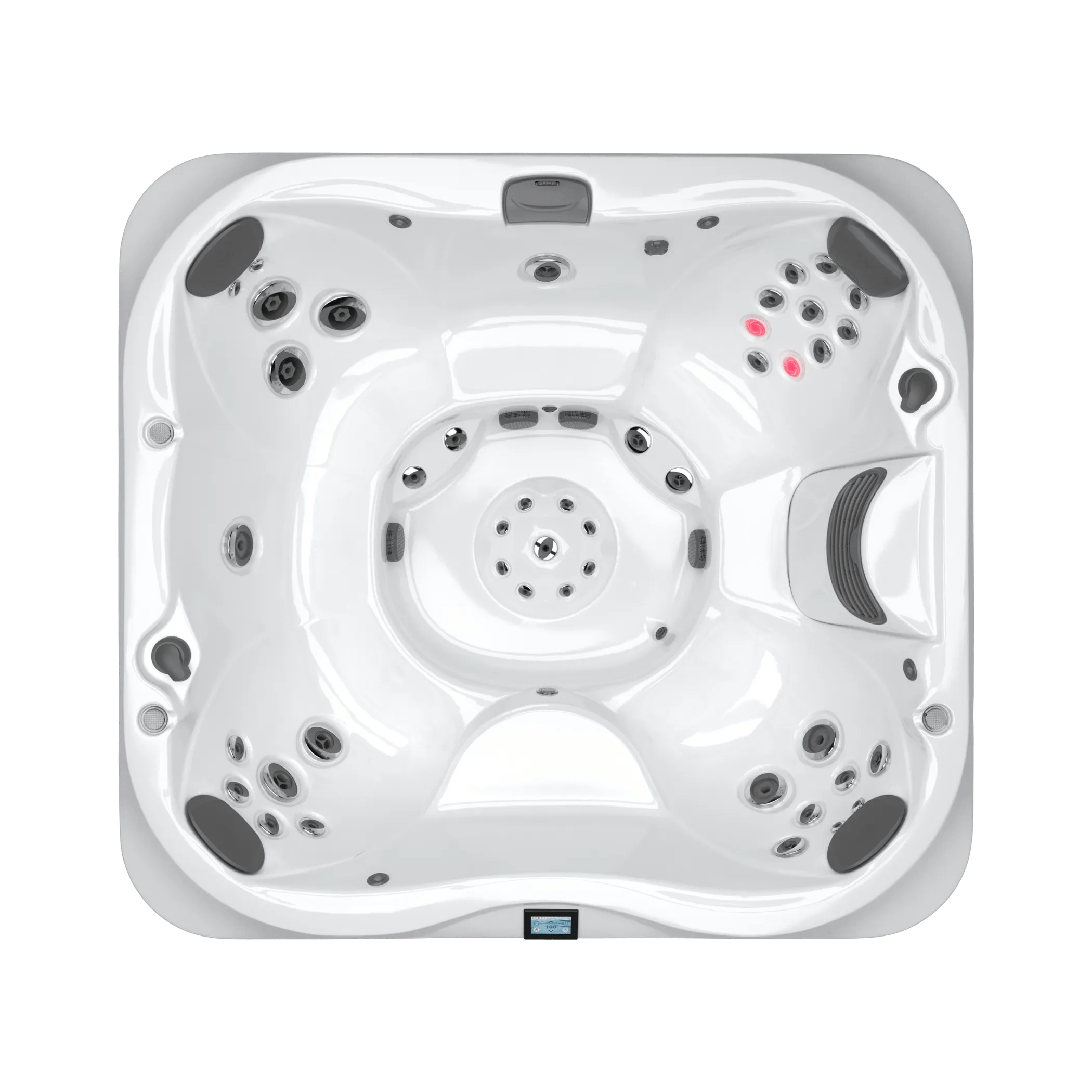 The midsize, rectangular, spacious J-365™ Hot Tub offers an open seating layout. Featuring the PowerPro™ jets, a HydroSoothe™ no-splash jetted massage pillow and PowerPro™ Therapy Seat for relaxing massage guaranteed to relax and rejuvenate you. The sophisticated ProFinish™ cabinetry with optional corner accent lighting rounds out this spacious hot tub.