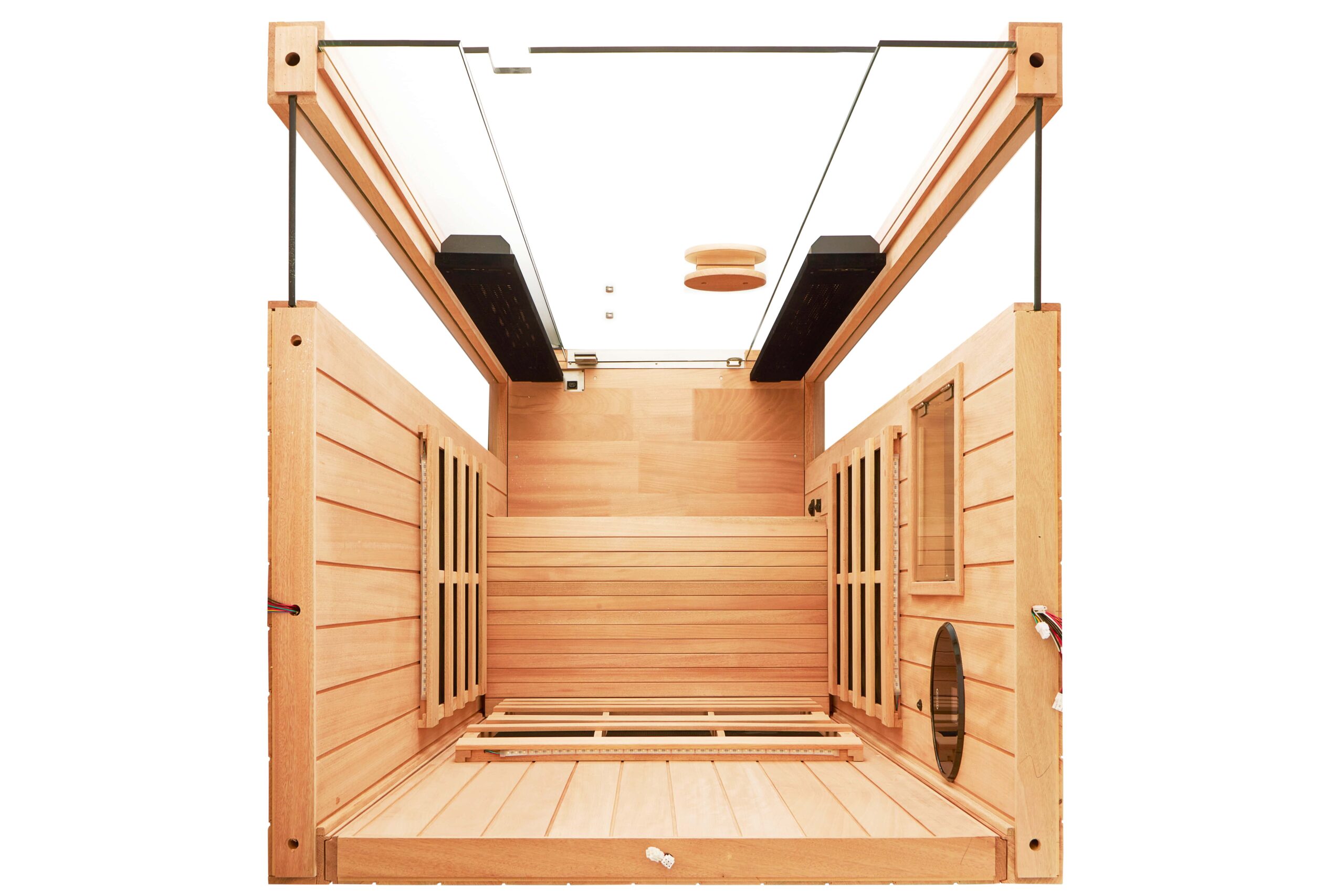Full Spectrum Infrared Front Facing Heaters: Experience the incredible benefits of our robust full spectrum heaters that emit near, mid, and far infrared wavelengths, enhancing the effectiveness of your sauna session. Therapeutic Red Light & High Output Chromotherapy: Jacuzzi Saunas offer the soothing benefits of therapeutic red light therapy and the mood-enhancing effects of high-output chromotherapy. These features are incorporated into two overhead light bars, while overhead LED reading lights provide additional convenience. Durable Construction: Our saunas are built to last with a sturdy metal threshold, upgraded hinges, and a solid wood floor that can be easily replaced, ensuring they can withstand the demands of heavy sauna usage.