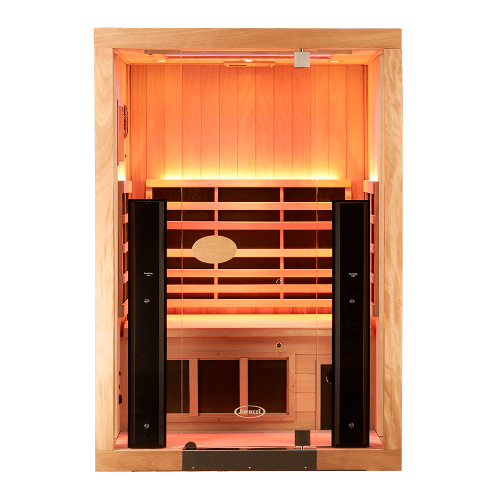 Experience the amplified advantages of your sauna session with our highly effective full spectrum infrared front-facing heaters. These heaters emit a wide range of infrared wavelengths, including near, mid, and far infrared, maximizing the benefits for your body.Indulge in the therapeutic benefits of red light therapy and immerse yourself in the mood-enhancing atmosphere of high-output chromotherapy with our Jacuzzi Saunas. Equipped with two overhead light bars, these saunas provide soothing red light therapy and vibrant chromotherapy. Additionally, conveniently located overhead LED reading lights offer further functionality and convenience. Rest assured that our saunas are built to withstand heavy usage thanks to their durable construction. Featuring a robust metal threshold, upgraded hinges, and a solid wood floor that can be easily replaced when needed, our saunas are designed to endure the demands of frequent and intense sauna sessions.